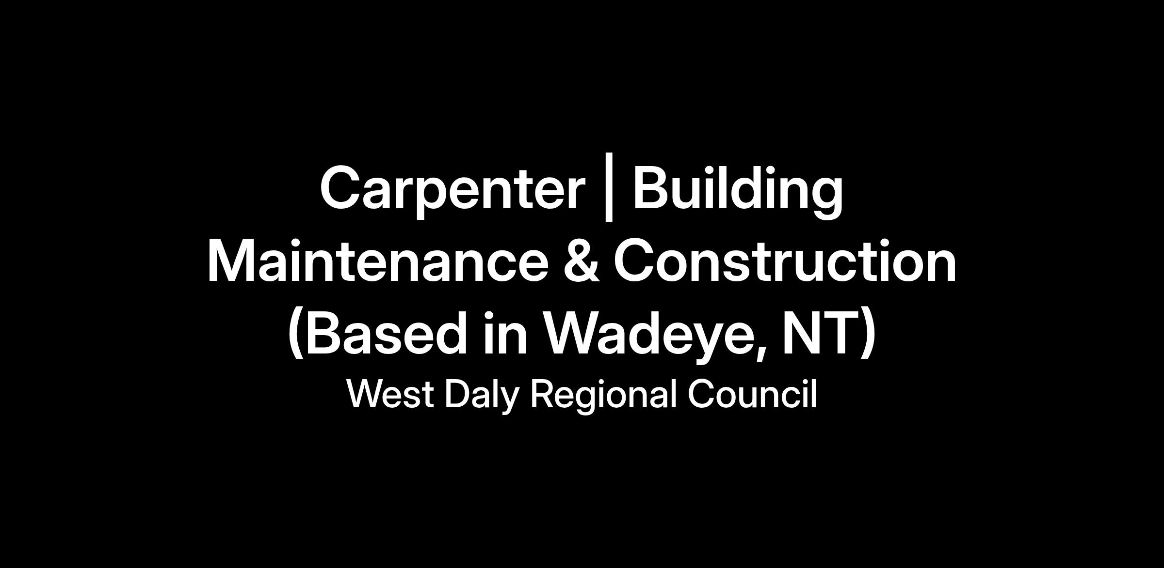 Carpenter | Building Maintenance & Construction (Based in Wadeye, NT)