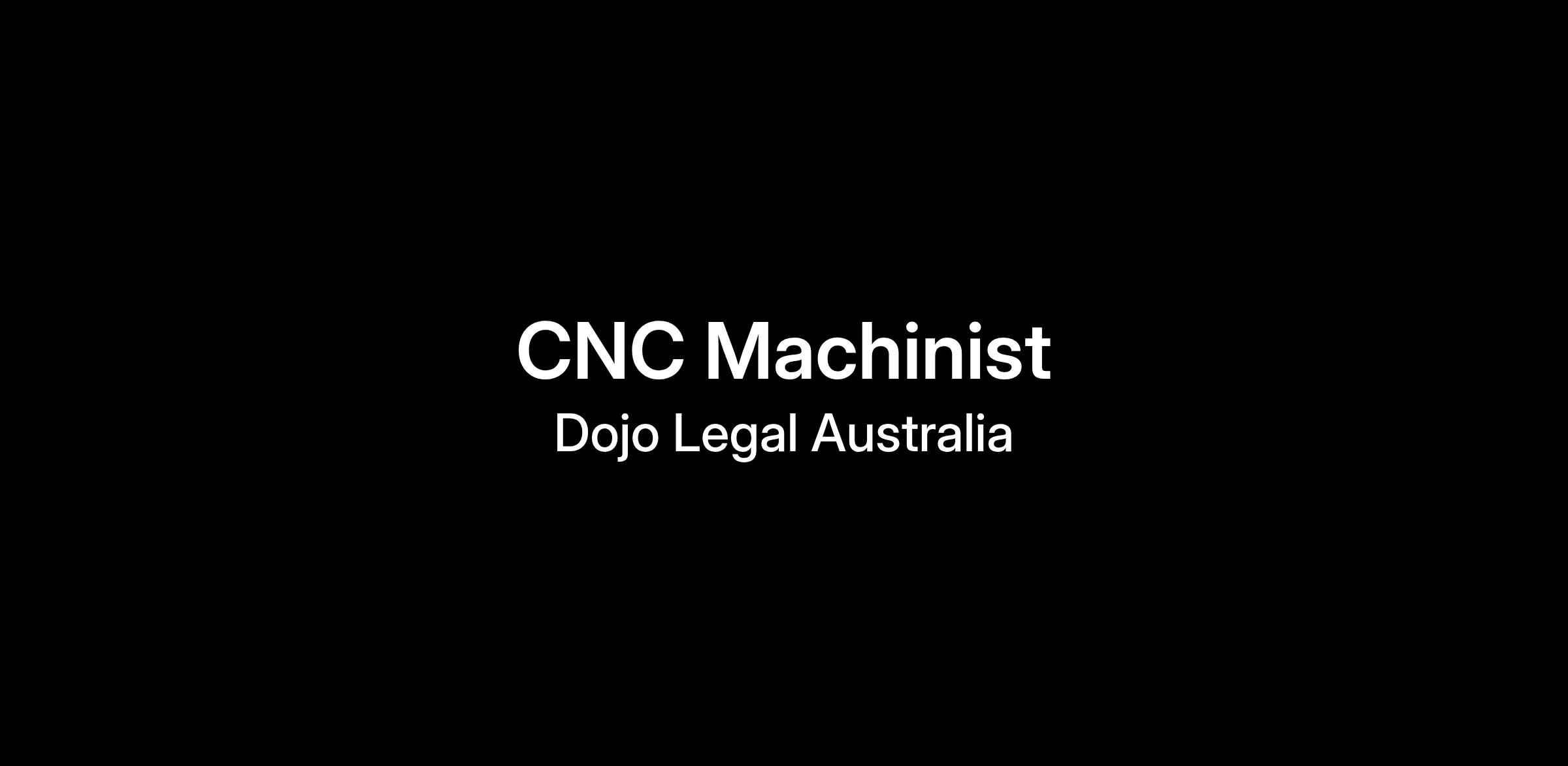 If you are motivated and ready to take on this exciting challenge, please send your resume and cover letter to jobpr@dojolegal.com.au with the subject line CNC Machinist | [YOUR NAME].