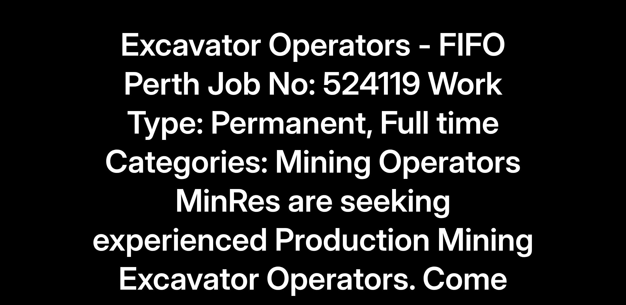 We invite experienced Production Mining Excavator Operators to join our high-performing MinRes team on a 2/1 FIFO roster. Secure a permanent, full-time position at our owner-operated iron ore and lithium mine sites in the Goldfields and Pilbara. In this rewarding environment, you’ll be part of a tight-knit crew that prides itself on a strong safety culture and supportive team spirit.
