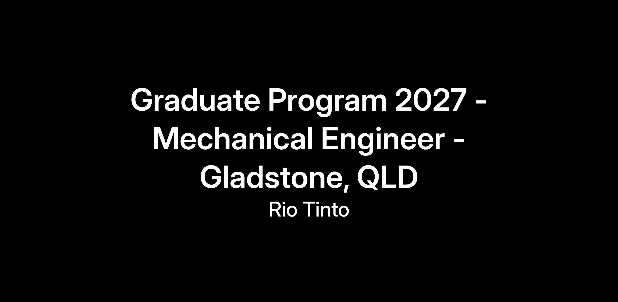 Graduate Program 2027 - Mechanical Engineer - Gladstone, QLD