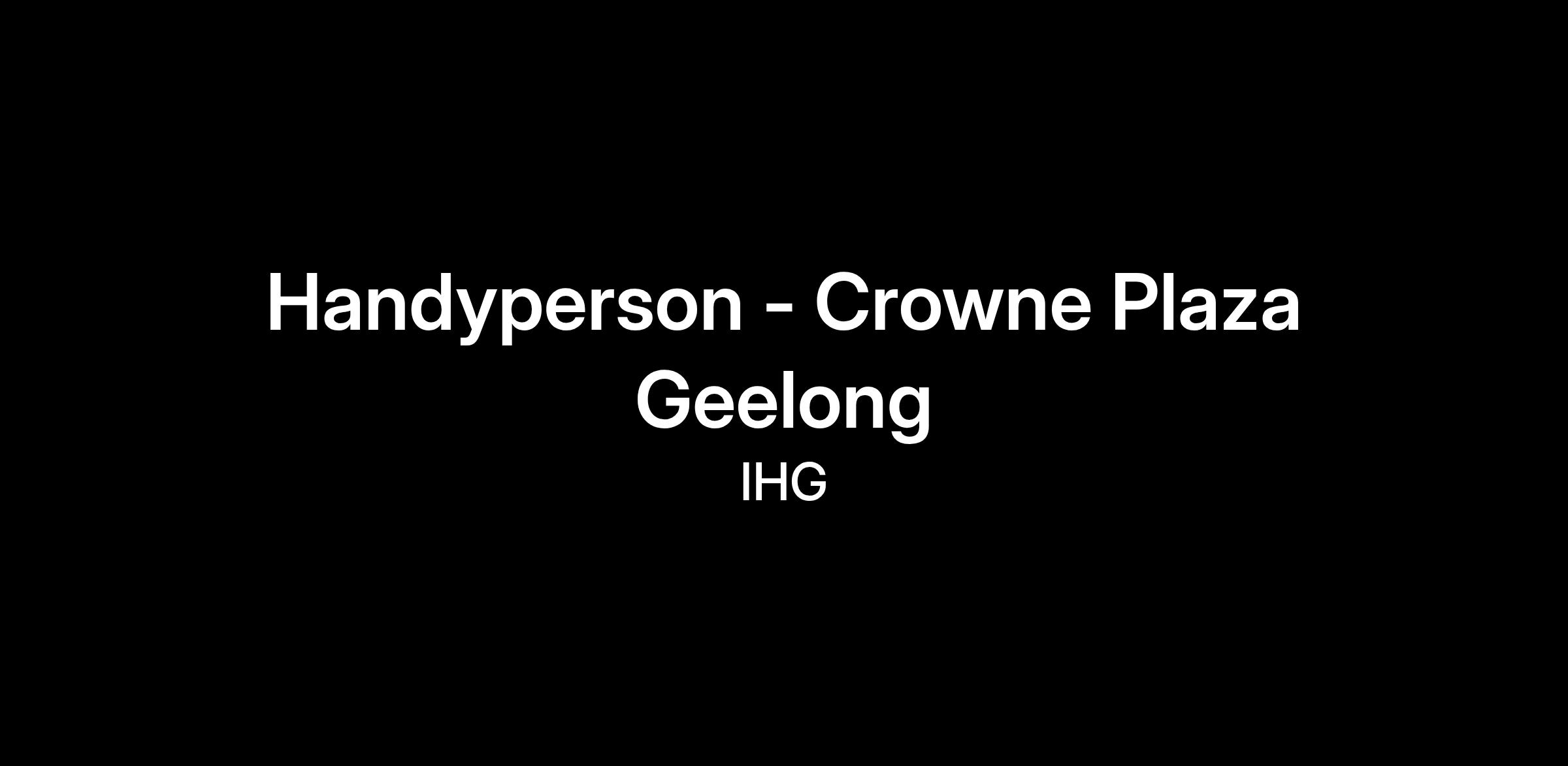 An exciting opportunity awaits! We are currently seeking an enthusiastic and experienced Handyperson to join the Maintenance team at the newly opened Crowne Plaza Geelong.