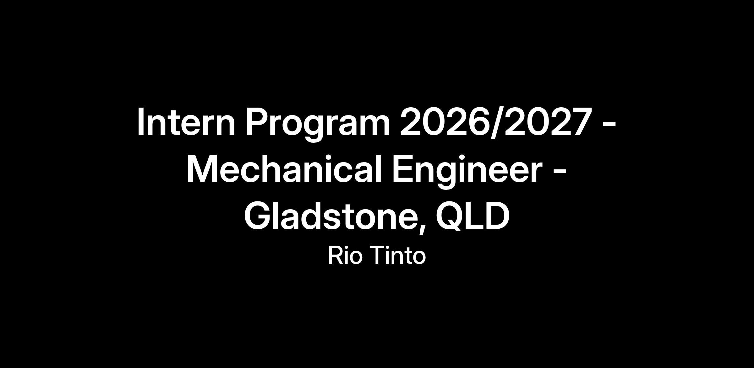 Intern Program 2026/2027- Mechanical Engineer - Gladstone, QLD