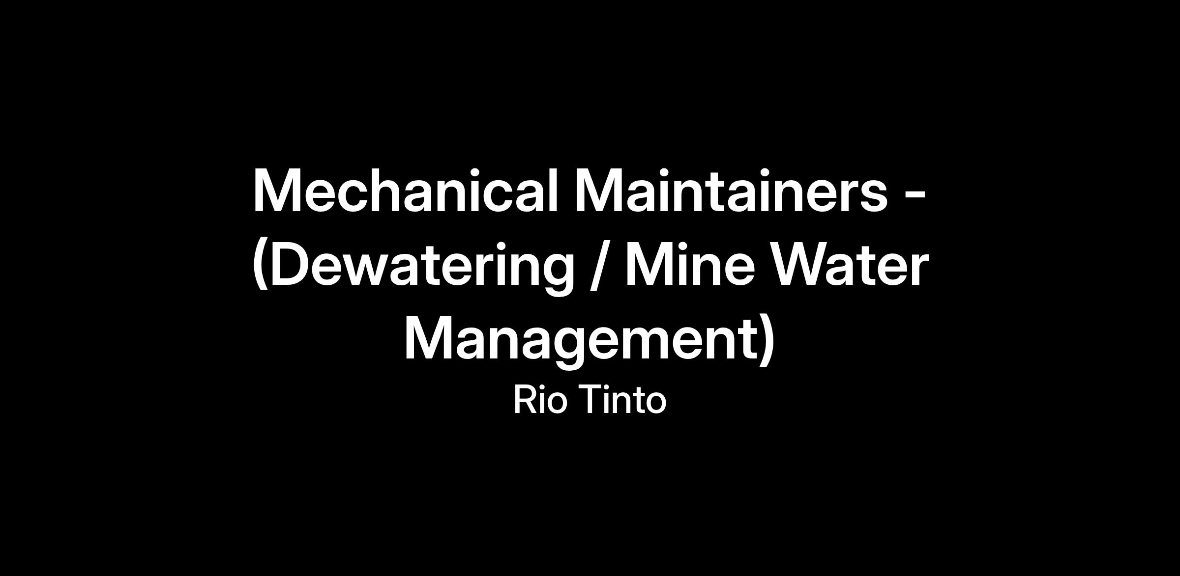 We are looking for a Mechanical Maintainer - Mine Water Management / Dewatering for a residential or FIFO opportunity at our Robe Vally mining operation. This role is a great opportunity for a safety conscious individual looking to continually improve and contribute to our culture and world class asset.