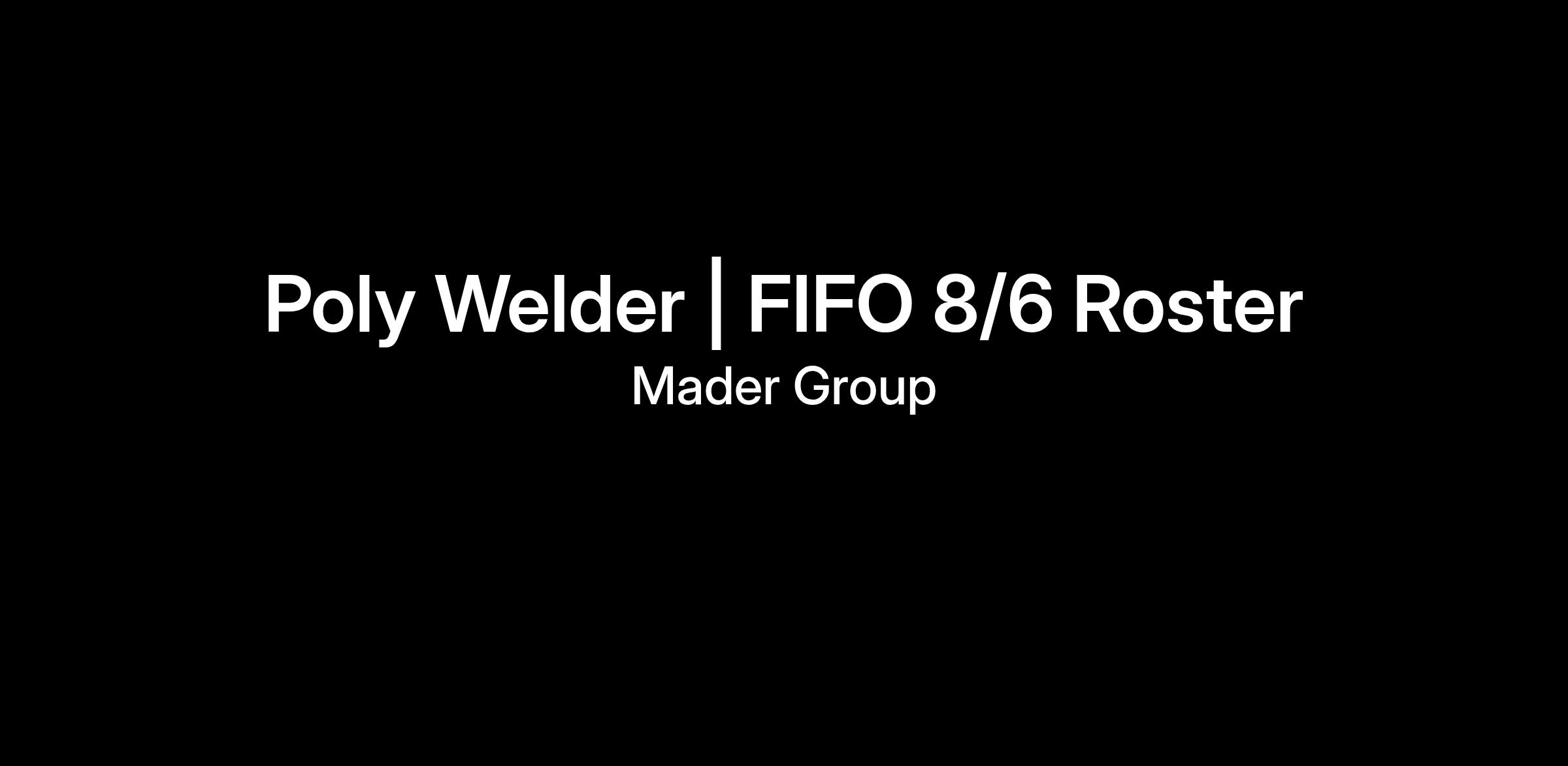 Due to continued growth, Mader are currently seeking Poly Welders to join our Rostered Fixed Plant Maintenance Crews on a FIFO 8/6 roster on an ongoing maintenance roster.