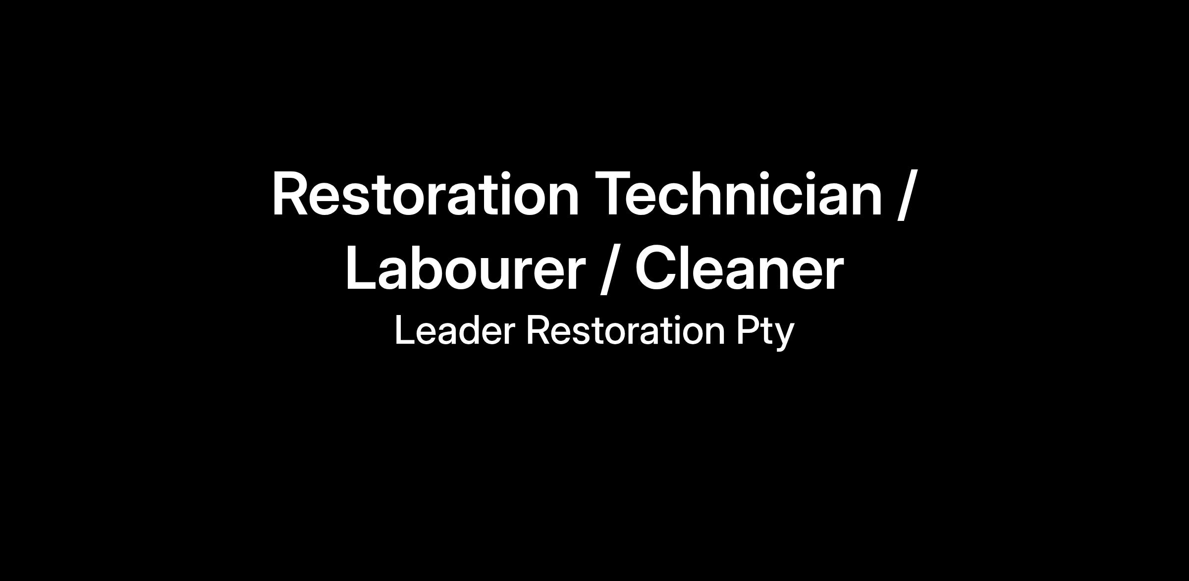 Leader Restoration is a rapidly growing restoration company that has been specialising in insurance repairs for over 20 years. We are seeking a Restoration Technician to join our dynamic team in a permanent full-time role. This is an exciting opportunity for someone who is hardworking, eager to learn, and looking to build a rewarding career in restoration.