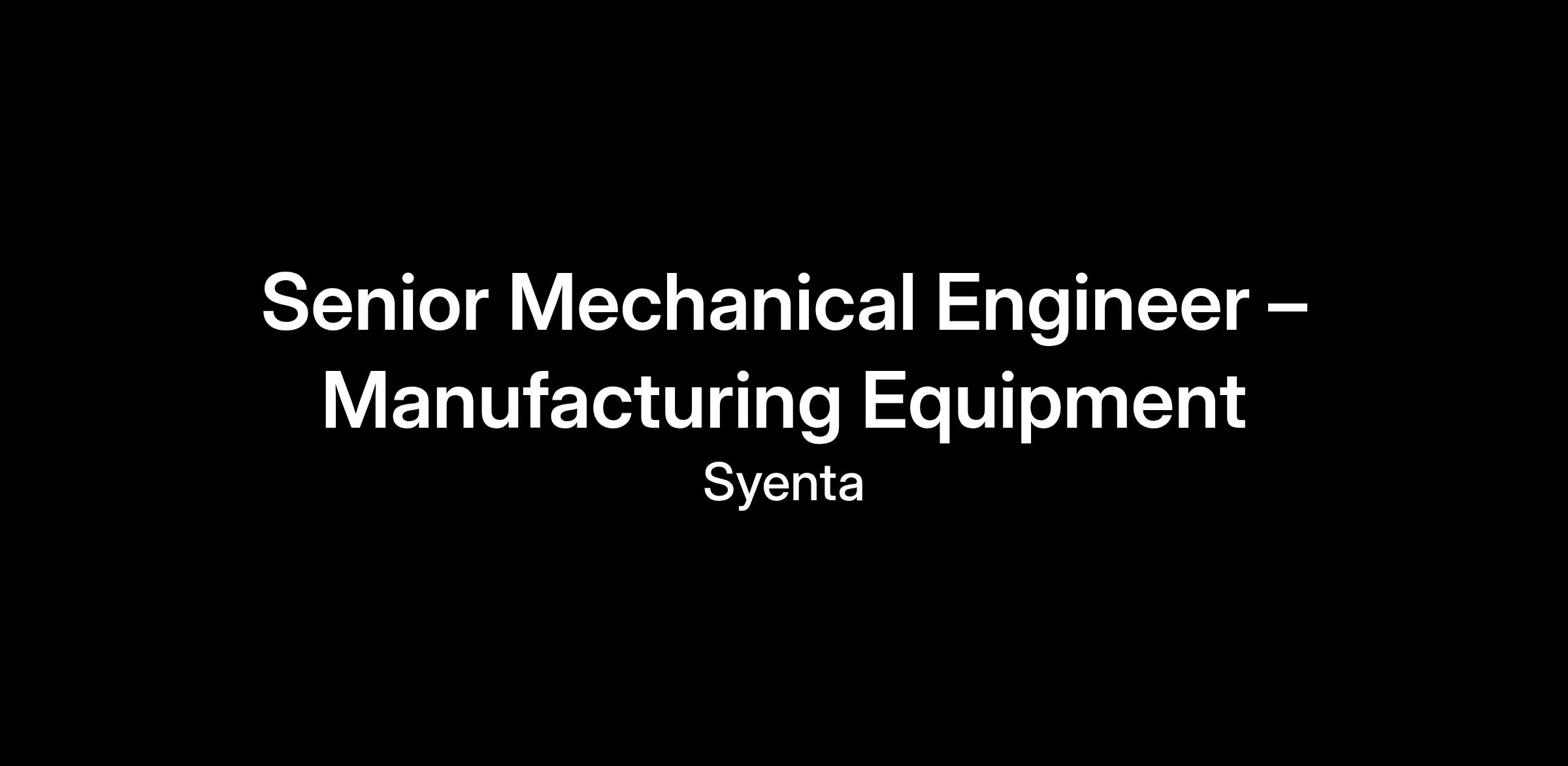 This is a high-impact role, critical to scaling Syenta’s in-house production capabilities and reducing reliance on external vendors.