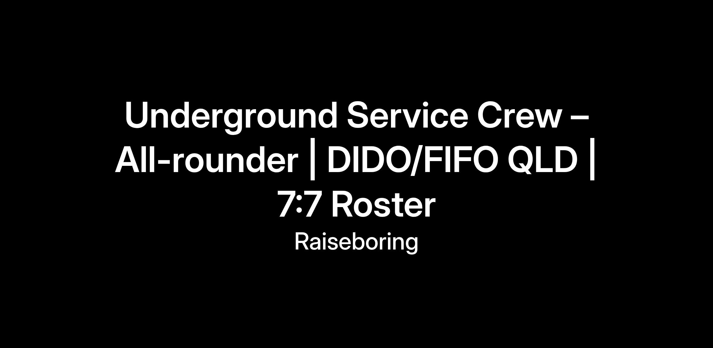 As apart of our Service Crew team, you'll be the underground all-rounder, keeping things running smoothly and safely. Reporting to the Mining Shift Supervisor.