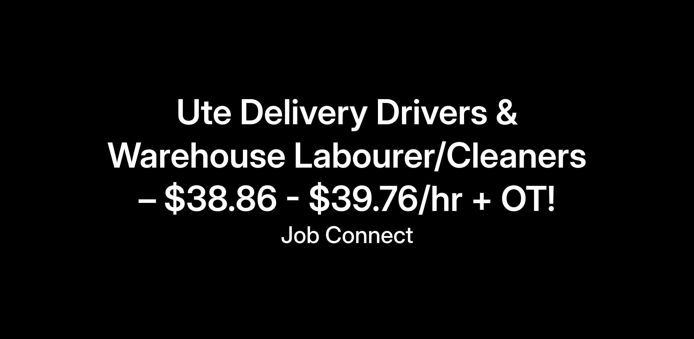 Ute Delivery Drivers & Warehouse Labourer/ Cleaners | Lytton | $38.68 - $39.76/hr