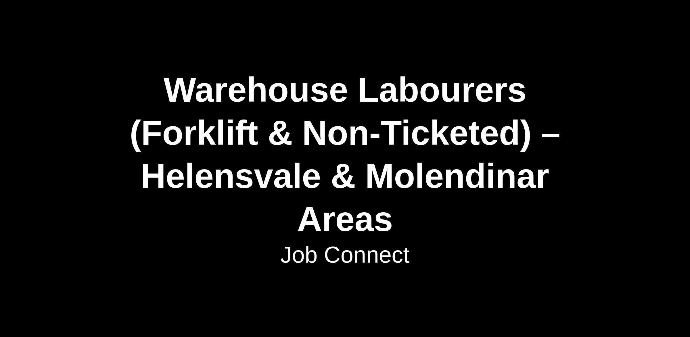 Job Connect is currently seeking Warehouse Labourers, both forklift ticketed and non-ticketed, for immediate starts with clients located in Helensvale and Molendinar.